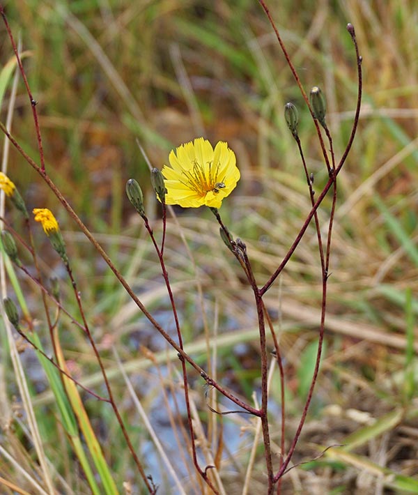 皿池湿原で確認されている湿原に特有な植物(湿原生植物)は52種類(令和3年現在)を数えます。兵庫県下の湿原について、湿原生植物の種数を調べたデータ(福井,2011年)による平均的な種数は22種であり、皿池湿原の湿原生植物の種多様性は非常に高いことがわかります。また、種多様性が高いことで知られる丸山湿原(宝塚市)の湿原群全体で確認されている湿原生植物も47種類です。皿池湿原の種多様性は県下有数、トップクラスといえます。