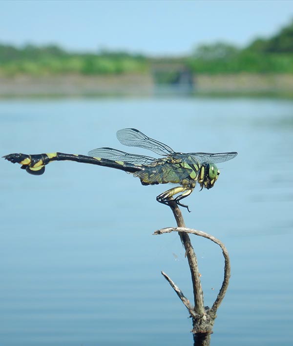 その他、湿原周辺にみられる里山林、湿生林、ため池、草地などの豊かな生態系には、それぞれにおいて育まれる多様な生きものを見ることができます。例えば、トンボ類は36種類(令和3年現在)を数え、非常に多くの種類を見ることができます。